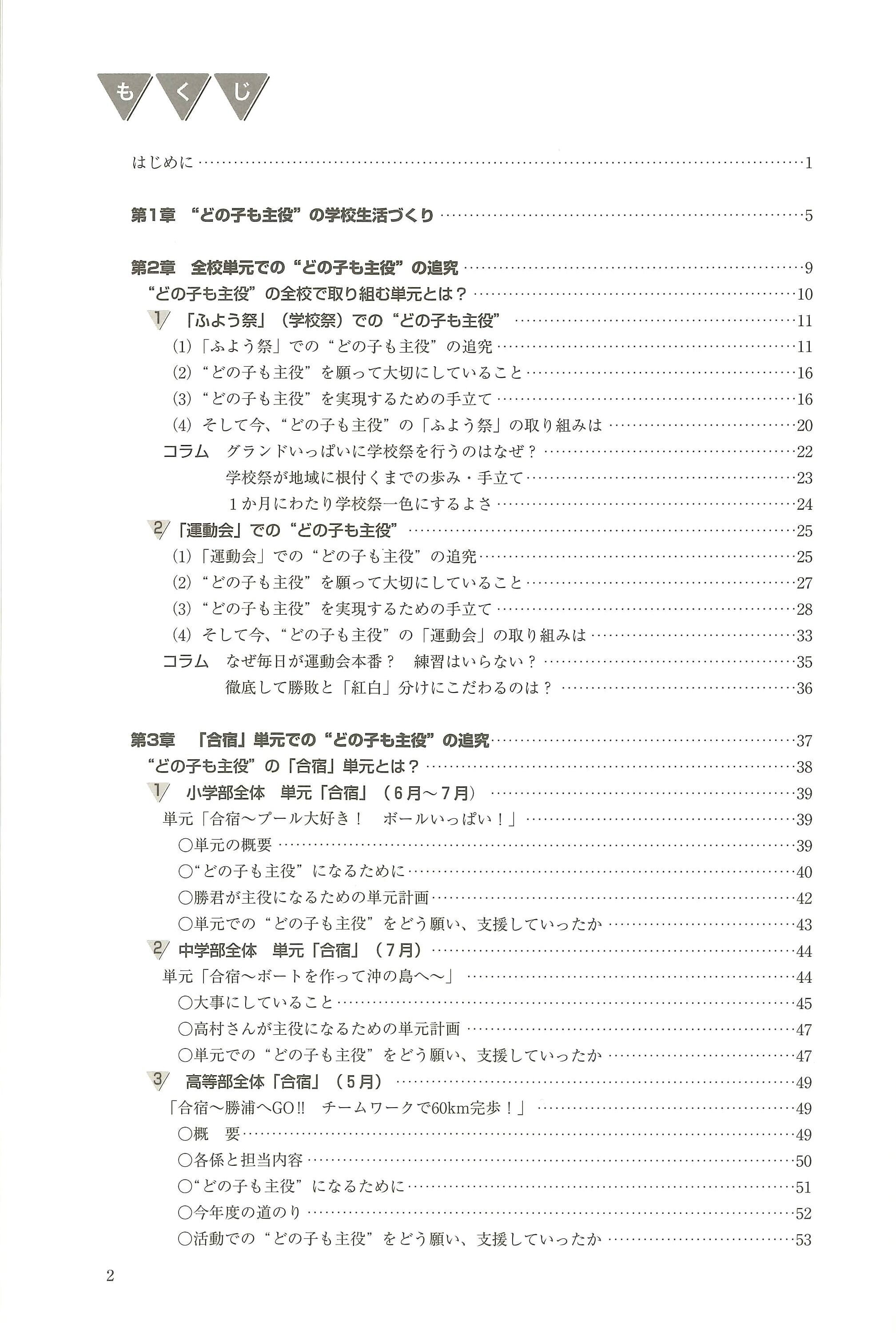 本書のテーマは「どの子も主役の学校生活づくり」です。本校の学校生活づくりに当たっては、普段の学級や作業班主体の活動だけでなく、児童生徒会が主体となって進めている「ふよう祭」(学校祭)や「運動会」、高等部の歩く「合宿」などについても大切にしています。学校生活における様々な取り組みにおいて、子どもたちが一人ひとりが主役になり、力を発揮できるような状況づくりを、本校の実践を踏まえて、わかりやすく示したものです。子どもたちが生き生きと活躍できる学校生活づくりのために役立てていただければ幸いです。