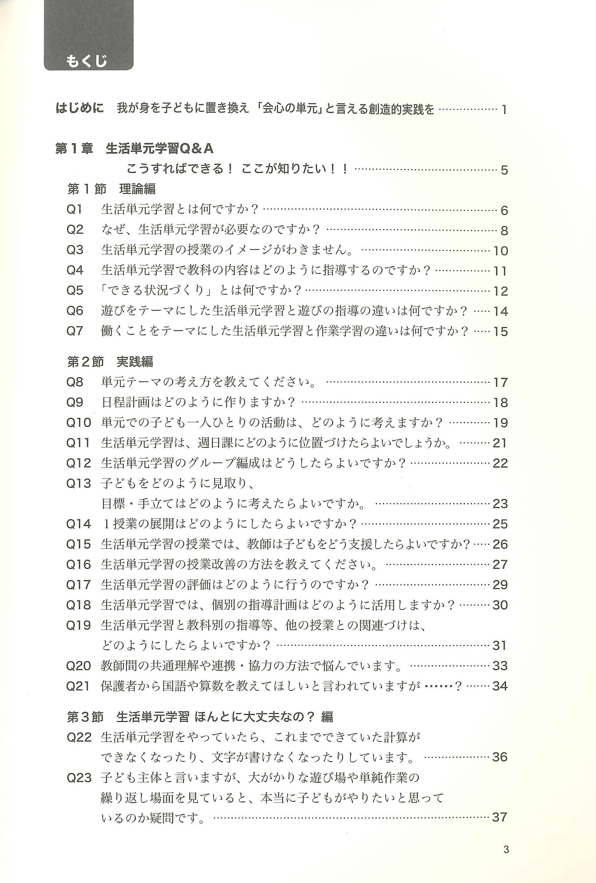 本書は、日本生活中心教育研究会機関紙「生活中心教育研究」第26号・27号の特集「こうすれば、できる!生活単元学習 パートⅠ・Ⅱ」に寄せられた提言「生活単元学習Q&A-こうすればできる!ここが知りたい!」と実践報告を中心にまとめられたものです。